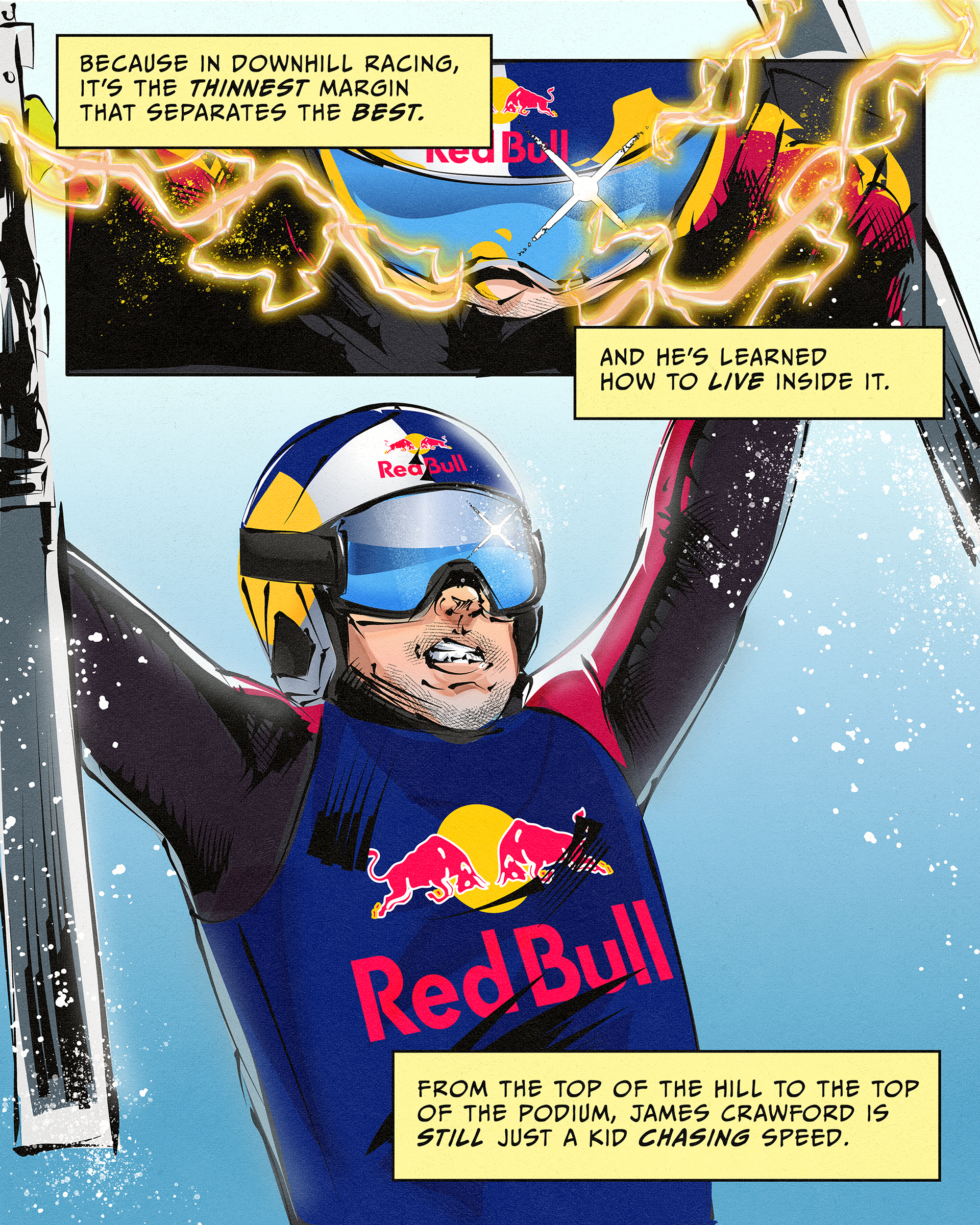 I was commissioned by Red Bull Canada to create a series of original comics spotlighting four Canadian athletes on their journey to the 2026 Winter Olympics in Milano Cortina.